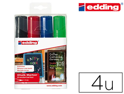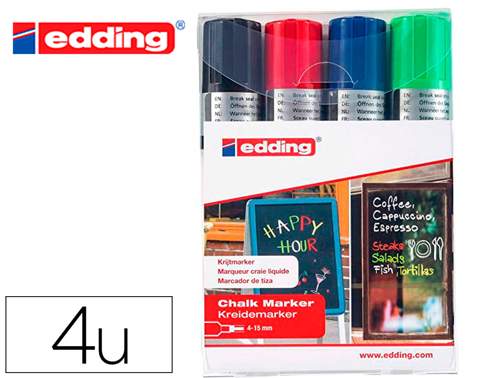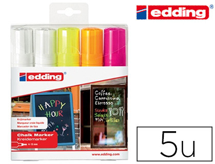 Marqueur edding craie liquide e4095 fenêtre ardoise verre pointe ogive 2 á 3mm assortis fluor pochette 5 unités