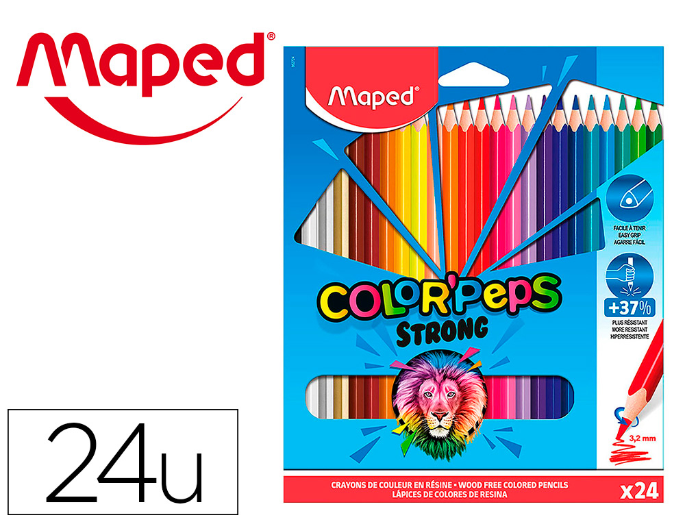 Les crayons de couleur Maped Strong Ultra-R résistants sont parfaits pour libérer la créativité de vos enfants. Conçus pour résister aux chocs et aux pressions, ces crayons accompagneront vos jeunes artistes partout, que ce soit à l'école ou en vacances. Le tube métallique pratique permet un rangement et un transport aisés, assurant que les crayons soient protégés et toujours prêts à l'emploi.