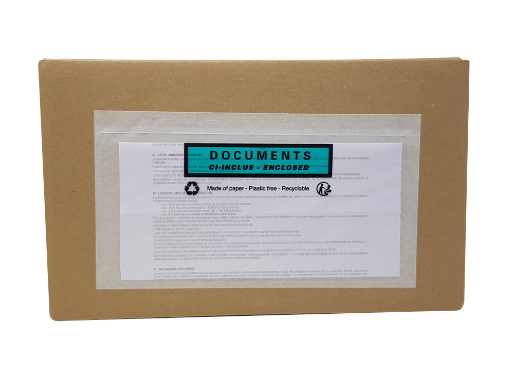 - Utilisation : Protège les documents contre les intempéries, les salissures et les manipulations répétées. Principalement utilisée pour le transport de documents accompagnant des envois postaux ou des livraisons.
