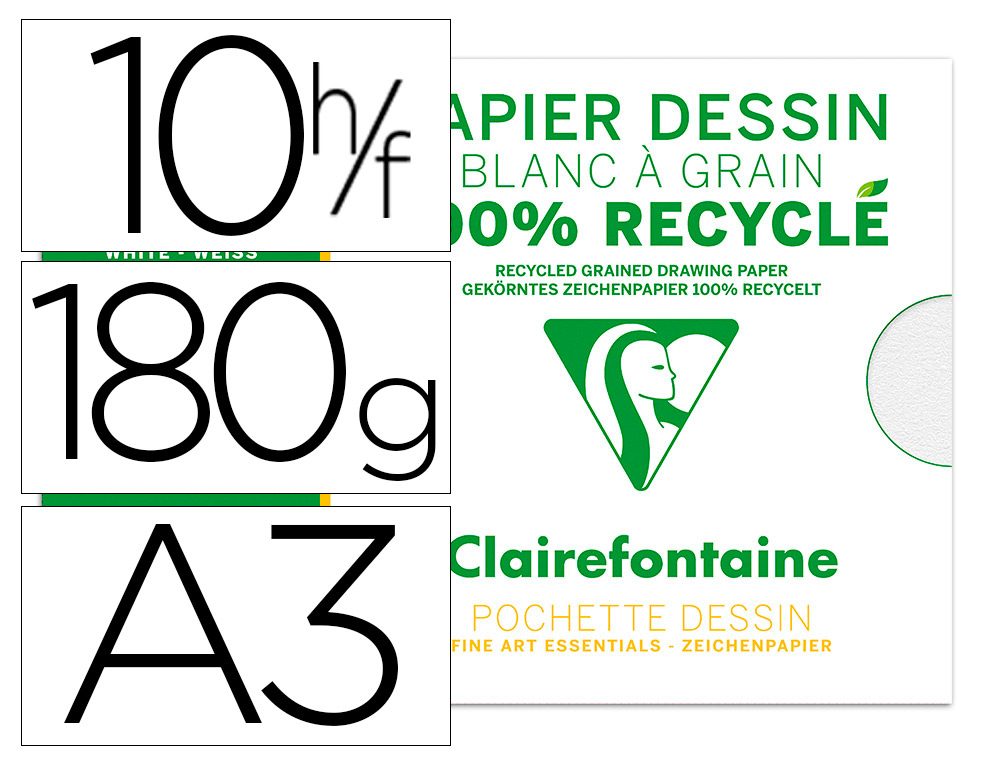 Découvrez un papier dessin exceptionnel qui marie qualité et respect de l'environnement. Conçu pour les artistes et les étudiants, ce papier dessin à grain offre une surface idéale pour donner vie à vos créations, tout en étant 100% recyclé. C'est le choix parfait pour ceux qui cherchent à allier performance artistique et engagement écologique.