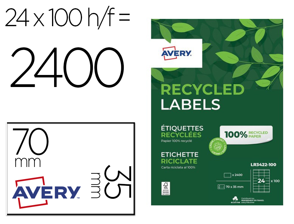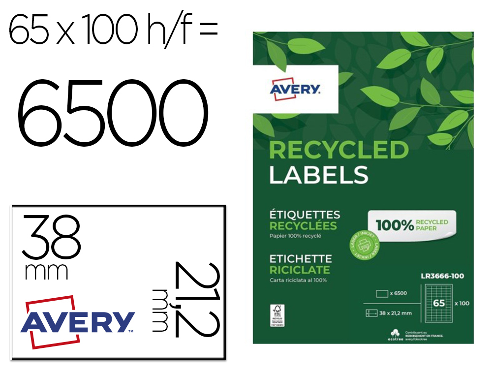 Les étiquettes Avery recyclées multiusages de format 210 x 148,5 mm sont une solution pratique et respectueuse de l'environnement pour de nombreuses applications d'étiquetage. Fabriquées en papier 100% recyclé sans chlore, ces étiquettes sont polyvalentes et compatibles avec les imprimantes laser et jet d'encre. Un partenariat avec Ecotree permet même de participer au reboisement en France.