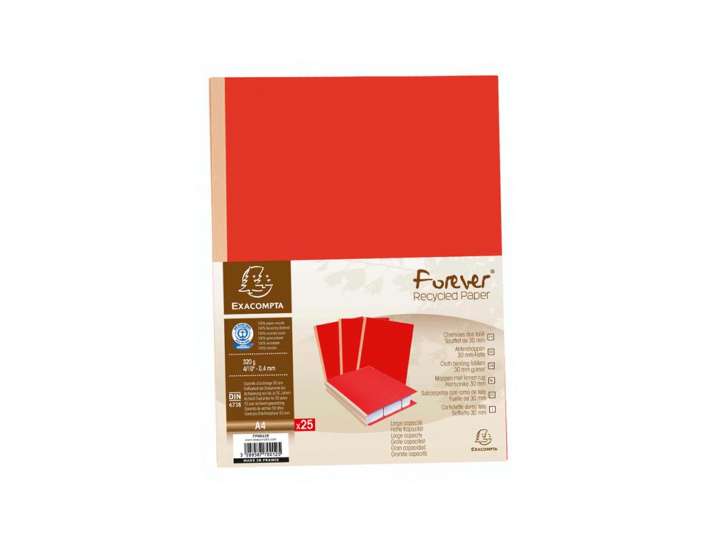 Chemise exacompta carte 240x320mm 320g documents a4 210x297mm soufflet dos toile 30mm coloris bleu paquet 25 unites