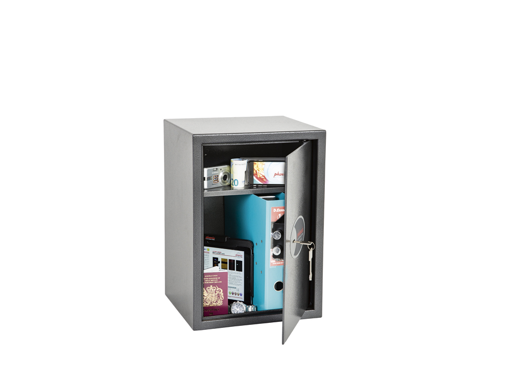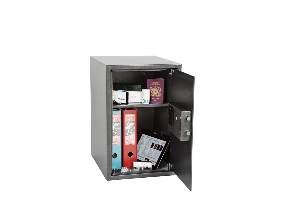 - Taille et Capacité : De taille 2, ce coffre-fort offre un espace de stockage suffisant pour des documents de format A4, des classeurs et d'autres objets de taille moyenne.