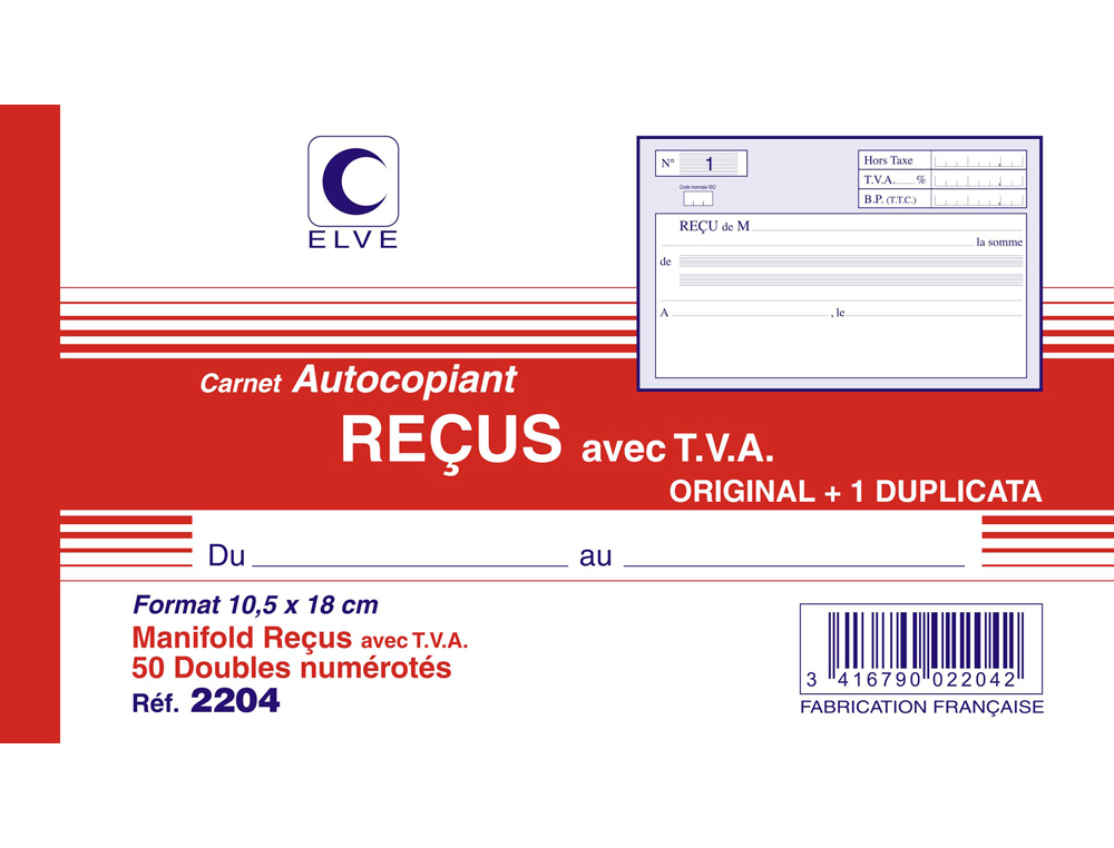 - 50 Duplis Reçus : Contient 50 ensembles de pages autocopiantes pour des copies instantanées et sécurisées.