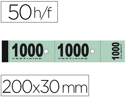 Bloc vestiaire piqué elve 3 coupons perforés détachables numérotés 1/1000 30x200mm 50 feuillets coloris rose