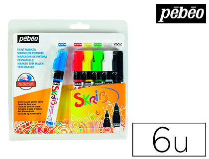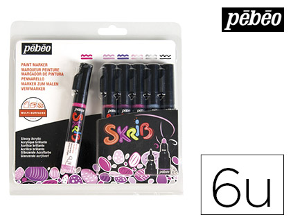 Marqueur peinture pébéo skrib acrylique brillant multi-supports pointe 0,7mm couleurs classiques set 6 unités