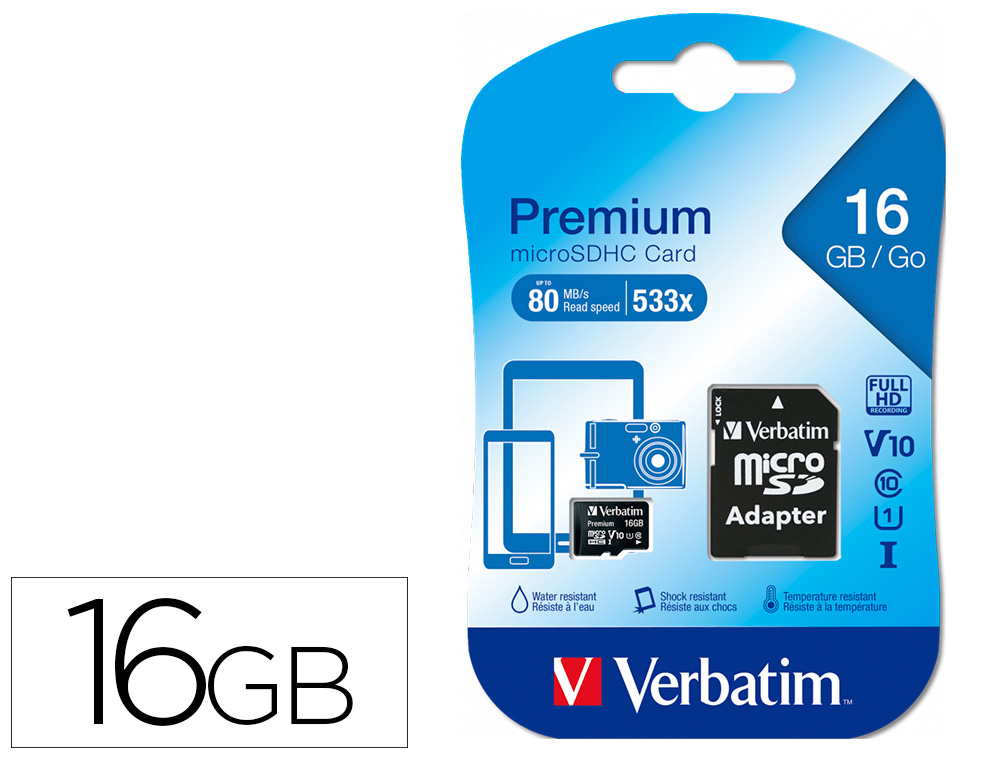 Micro sdhc verbatim 64gb classe 10 avec adaptateur ideal videos qualite cinema hd 3d vitesse ecriture