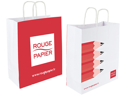 Sac kraft rouge papier blanc lisse100g/m2 motif rouge papier crayons anses torsadées 320x140x400mm boîte de 250 unités