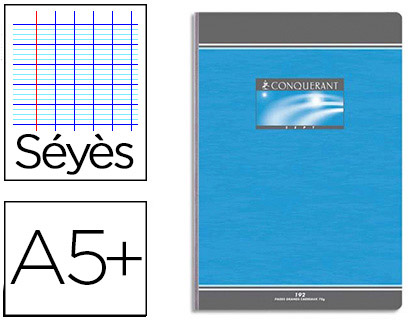 Cahier d'écriture piqué conquérant sept couverture offset 170x147mm à l'italienne 24 pages 70g double ligne 5mm paysage